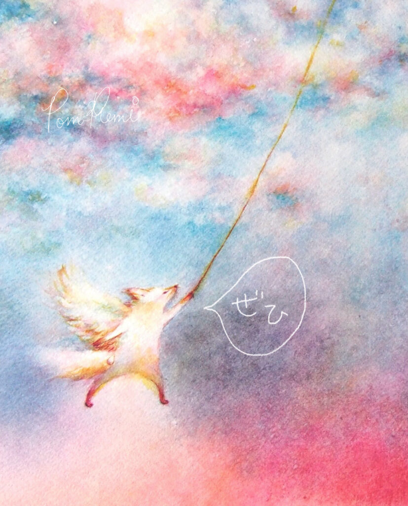 「Pom(ポム)」=「Peace of mind(平常心)」をイメージして描いた絵を中心に、
